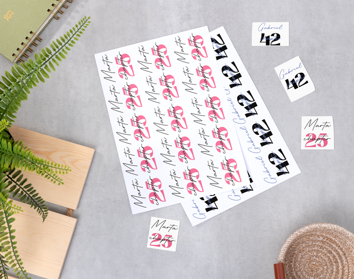 • Calcomanía personalizada. • Tarjeta recordatoria.