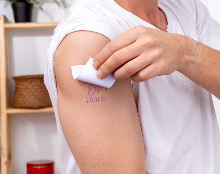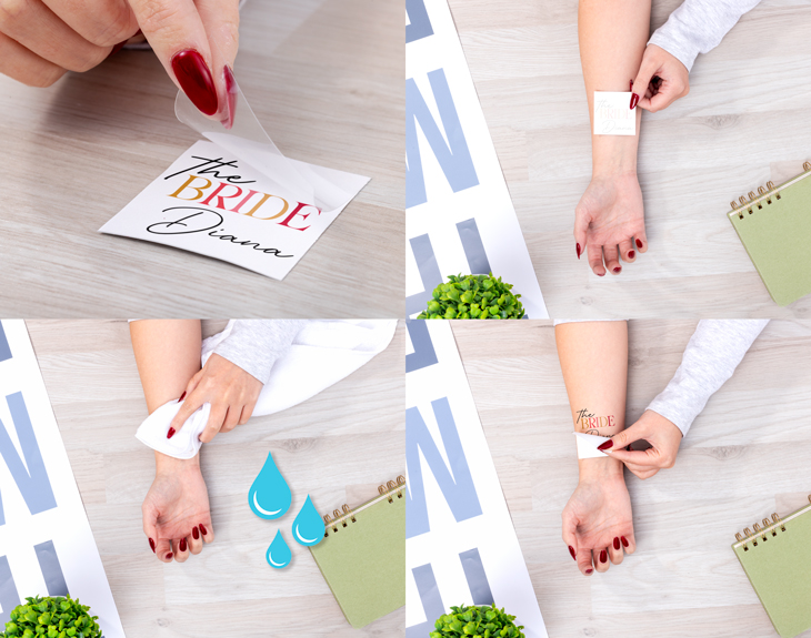 ¡Las bodas están hechas para celebrar el amor por todo lo alto! Son fechas en las que se junta toda la familia y amigos de los novios para comer, beber y celebrar el compromiso. Si quieres que lo invitados de tu boda se lleven un recuerdo inolvidable, tenemos el detalle perfecto. Nuestros tatuajes temporales personalizados con diseño "The Bride" son ideales para esta ocasión. Lo mejor de estas calcomanías es que son personalizables, podrás poner el texto o la foto que más te guste: nombres, fechas, frases graciosas o incluso imágenes de los novios. Son fáciles de aplicar, cómodos de llevar y completamente seguros para la piel, perfectos para lucir durante toda la fiesta. Por último, personalizar este tatuaje temporal es muy sencillo. El primer paso a seguir consiste en añadir el producto al carrito y entrar al área de personalización. Una vez ahí, ya puedes escribir el nombre o el mensajito que tú quieras. Pronto estará perfecto y listo para regalar. ¡Será un original regalo para bodas! - Tamaño: A4 Cómo poner el tatuaje: 1. Lava y seca la piel antes de ponerlo. 2. Retira la película transparente protectora. 3. Coloca el tatuaje temporal sobre la piel (presionando la piel). 4. Moja el tatuaje con un trapo húmedo o con la mano durante 30 segundos al menos. 5. Levanta con cuidado una esquina del tatuaje para comprobar que se haya separado del papel. Si no se ha separado, espera unos segundos más. 6. Retira el papel del tatuaje. 7. Deja que se seque el tatuaje al aire.