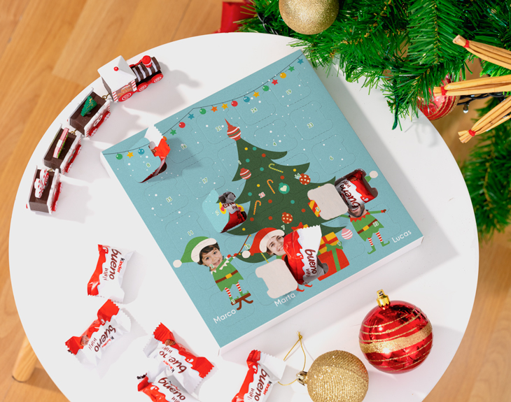 ¡Lo mejor de la Navidad es disfrutarla en familia! Juntarnos a comer y beber con todos nuestros seres queridos no tiene precio. Si tienes un montón de ganas de que llegue, tenemos el detalle perfecto para que la espera se haga mucho más amena. Nuestro calendario de adviento personalizado con diseño "Caras de elfo" es ideal para esta ocasión. Con este calendario podrás representar a tus familiares en forma de Elfo navideño, porque es personalizable, podrás añadir la cara de tus seres queridos en el cuerpo de los elfos del estampado. ¡Quedará genial! Es perfecto para que hagas una cuenta atrás contando los días que faltan para el 24 de diciembre. ¡Hay un dulce por cada día! Podrás elegir el tipo de relleno que quieras en cada cuadradito. Por último, personalizar este calendario de adviento es muy sencillo. El primer paso a seguir consiste en añadir el producto al carrito y entrar al área de personalización. Una vez ahí, ya puedes añadir las caras de tus familiare. Pronto estará perfecto y listo para regalar. ¡Será un original regalo para Navidad! Puedes llenar el calendario con las gominolas o chocolates que más os gusten. ¡Tenemos un montón de opciones! Tamaño aproximado: 22,50x22,50 cm