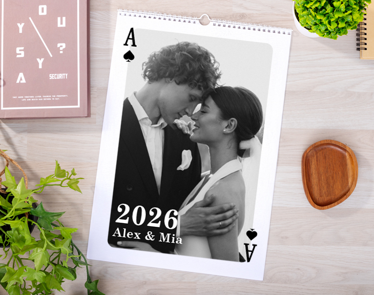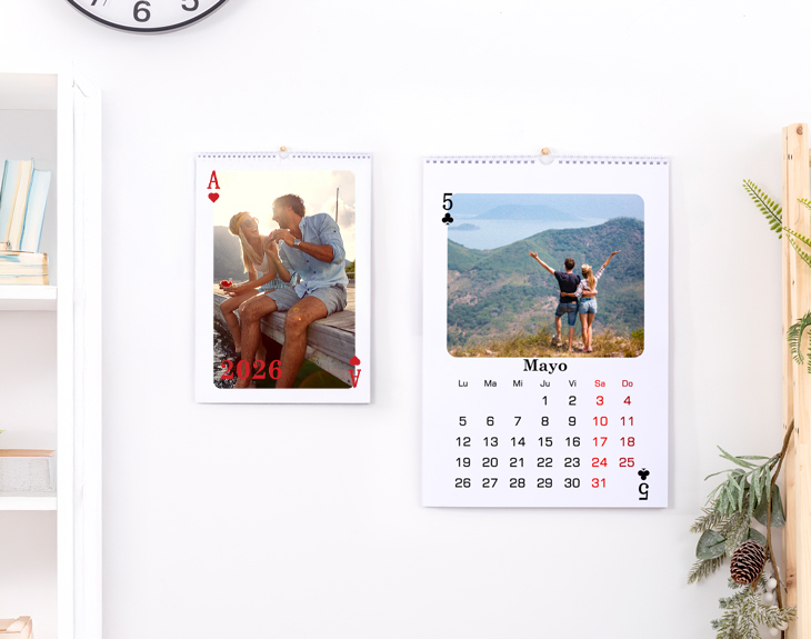 ¿Buscas sorprender a esa persona tan especial? ¡Tenemos el regalo perfecto! Este calendario de pared personalizado único y divertido es ideal para quienes disfrutan de los pequeños detalles originales y quieren darle un toque especial a su año. Además, viene de maravilla para anotar los cumpleaños y los planes de cada mes. Lo mejor de este calendario de pared es que es personalizable. Cada mes podrás poner la foto que tú quieras acompañada de un mensaje. Desde corazones y tréboles hasta diamantes y picas, cada carta del calendario está llena de personalidad y encanto. ¡Quedará genial! Personalizar este calendario es muy sencillo. El primer paso a seguir consiste en añadir el producto al carrito y entrar al área de personalización. Una vez ahí, ya puedes escribir el mensajes y añadir las fotos que tú quieras. Pronto estará perfecta y lista para regalar. ¡Será un original regalo cualquier ocasión! Medidas: 29,7 x 42cm aproximadamente.