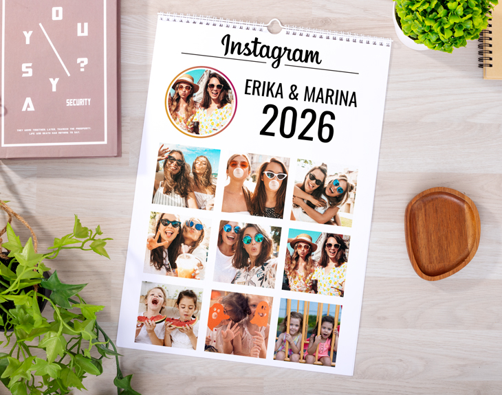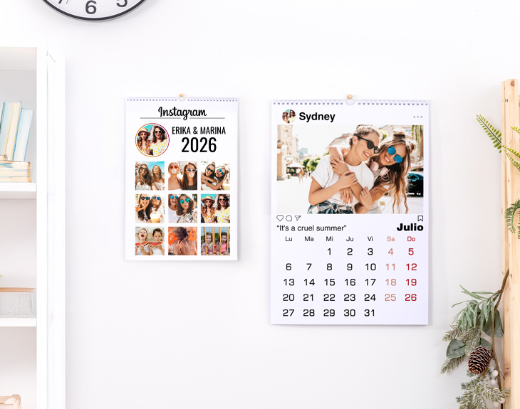Si quieres que cada mes tenga algo de especial, con nuestro calendario de pared personalizado con diseño "Instagram" lo conseguirás. Además, este calendario viene genial para que puedas apuntar todos los cumpleaños de tus seres queridos y todas esas cosas que tienes programadas cada mes. Lo más guay de este calendario de pared es que es personalizable. Cada mes cuenta con un diseño al estilo post de Instagram, donde puedes incluir tus fotos favoritas, acompañas de fechas especiales y pequeños textos personalizados. ¡Es súper especial! Desde viajes, aventuras, hasta momentos familiares o con amigos, gracias a este calendario podrás tener a la vista tus recuerdos más felices. Se convertirá en un original regalo con el que sorprender a tus seres queridos o para decorar la pared de tu hogar o de tu oficina. Por último, personalizar este calendario es muy sencillo. El primer paso a seguir consiste en añadir el producto al carrito y entrar al área de personalización. Una vez ahí, ya puedes escoger las fotos que quieras y decorar este calendario tan personal. Pronto estará perfecto y listo para regalar. ¡Será un original regalo!
