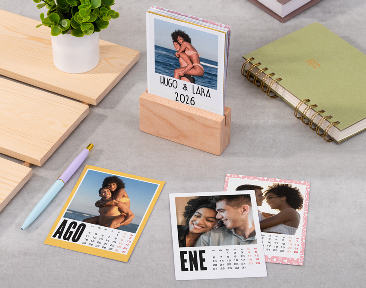 ¿Tú y tu pareja estáis emocionados con todos los planes y viajes que queréis hacer este año? Entre tantas cosas por organizar, tener todo a punto es fundamental. Con nuestro calendario de tarjetas Polaroid personalizado, podréis anotar cada cita y compromiso de una manera tierna y especial. Además, será perfecto para no olvidar los cumpleaños de vuestros seres queridos y todas esas fechas importantes que tenéis programadas mes a mes. Lo mejor de este calendario Polaroid es que es totalmente personalizable. Podrás incluir tus fotos favoritas de cada mes: desde viajes y aventuras, hasta momentos especiales con familia y amigos. Gracias a este calendario, podréis tener vuestros recuerdos más felices siempre a la vista. ¡Será algo muy especial! Y si lo prefieres, puedes escoger la opción de que el soporte de madera esté grabado, añadiendo un detalle único que quedará genial. Este calendario se convertirá en el regalo perfecto para sorprender a tu pareja, ya sea para vuestro aniversario o para el día de San Valentín. Por último, personalizar este calendario es muy sencillo. Solo tienes que añadir el producto al carrito y entrar al área de personalización. Allí, podrás elegir las fotos que quieras cada mes. ¡En poco tiempo estará listo para regalar! ¡Será un regalo original para parejas! Medidas del portafotos: 10cm x 2 cm x 3 cm (ancho). Medidas de las fotos: 9,5 X 11,5 cm.