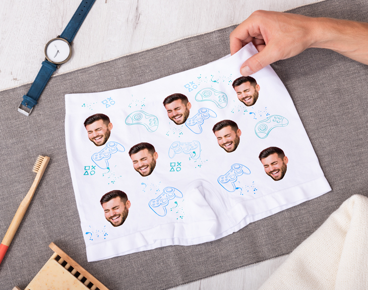 Si tu novio es un auténtico 'gamer' y le encanta pasarse horas jugando a sus videojuegos favoritos, hazle el regalo más divertido y sexy del mundo: ¡nuestro calzoncillo personalizado con este estampado tan guay! Sorpréndele con este regalo tan diferente y hecho a medida para él, que le encantará y querrá usar en todas vuestras veladas románticas. ¡Es el regalo perfecto! No hay mejor forma de sorprender a tu novio en vuestro aniversario, San Valentín o su cumple que con este original detalle para parejas. Es un regalo de lo más romántico y divertido para sacarle una sonrisa a tu novio y le encantará poder usarlos siempre que quiera porque son súper cómodos. Se convertirá en su prenda favorita porque es súper guay. Están fabricados con poliamida, un tejido elástico y transpirable, y cuentan con una cinta elástica para que se ajusten perfectamente a la cintura. Además, puedes escoger entre diferentes tallas (M, L y XL), así todo el mundo podrá disfrutar de estos increíbles calzoncillos personalizados con la cara que quieras. Si quieres saber cómo puedes personalizar este calzoncillo, sigue leyendo porque es muy fácil. Añade el producto al carrito y entra en el área de personalización. Ahí encontrarás este divertido diseño hecho para los novios más gamers que tendrás que completar con la imagen que quieras. Nosotros nos encargamos del resto para que disfrutéis de este súper regalo. ¡Será un recuerdo único! Talla: - Talla M: 33,5 x 25 centímetros. - Talla L: 36 x 26 centímetros. - Talla XL: 43 x 29 centímetros. Material: poliamida (90%) y elastano (10%). Color: negro. Importante: se puede lavar a una temperatura máxima de 30 grados. No es recomendado usar lejía ni secarlo en la secadora. No se debe planchar.