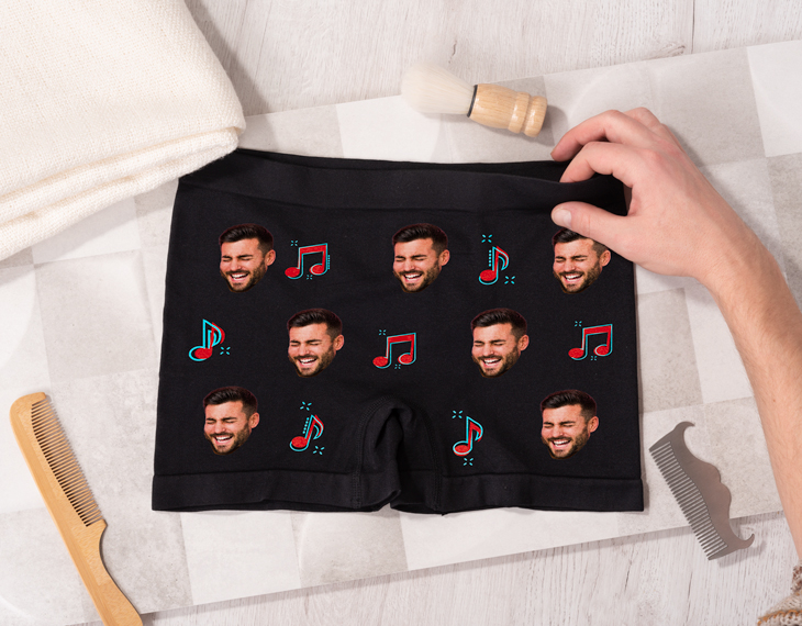 Hazle el mejor regalo del mundo a tu novio: ¡un calzoncillo personalizado lleno de notas musicales! Sorpréndele con este detalle tan divertido y sexy que le encantará y que podrá usar en todas vuestras veladas románticas o para el día a día. Si quieres huir de los típicos regalos, estos calzoncillos son la mejor opción para dejar sin palabras a tu pareja. ¡Es un regalo único! San Valentín, vuestro aniversario, su cumple o cualquier otra fecha especial para vosotros es genial para regalarle este original detalle para parejas. Son tan cómodos que no podrá parar de usarlos y además será un recuerdo único. Están fabricados con poliamida, un tejido elástico y transpirable, y cuentan con una cinta elástica para que se ajusten perfectamente a la cintura. Además, puedes escoger entre diferentes tallas (M, L y XL), así todo el mundo podrá disfrutar de estos increíbles calzoncillos personalizados con la cara que quieras. Personaliza este calzoncillo para tu novio en dos pasos porque es súper fácil. Añade el producto al carrito y entra en el área de personalización. Una vez ahí, encontrarás este divertido diseño hecho para los novios más atrevidos y solo tendrás que completarlo con la imagen que quieras. Nosotros nos encargamos del resto para hacer de este regalo un recuerdo único. Talla: - Talla M: 33,5 x 25 centímetros. - Talla L: 36 x 26 centímetros. - Talla XL: 43 x 29 centímetros. Material: poliamida (90%) y elastano (10%). Color: negro. Importante: se puede lavar a una temperatura máxima de 30 grados. No es recomendado usar lejía ni secarlo en la secadora. No se debe planchar.
