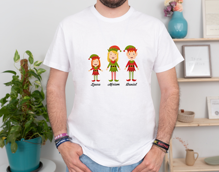 Nuestra camiseta personalizada está diseñada para disfrutes de unas navidades increíbles en familia. Si en tu casa las reuniones familiares se acentúan en Navidad, no dudes en sorprender a todos con esta camiseta de nuestra familia de elfos de Navidad. Diseña tú mismo la camiseta con una amplia variedad de personajes. Importante: en función del número de cervezas, estas irán divididas en una o varias filas. Material: - Algodón: 100% algodón - Tacto algodón: 100% poliéster cotton touch - Técnicas: 100% poliéster Importante: a partir de 6 personajes irán distribuidos en dos filas. Es decir: - Familia de 6 personajes: 3 en la fila superior, y 3 en la inferior. - Familia de 7 personajes: 4 en la fila superior, y 3 en la inferior. - Familia de 8 personajes: 4 en la fila superior, y 4 en la inferior.