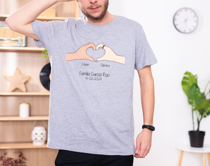 Hay familias que están súper unidas y les encanta pasar tiempo juntos, haciendo planes y compartiendo hobbies en cualquier sitio. Si queréis tener algo que sea especial para toda la familia y podáis compartir todos, esta camiseta personalizada es perfecta. Su diseño simboliza el amor y la unión de la familia, y no hay nada como tenerlo plasmado en esta camiseta y fardar de ella siempre que quieras. Si se acerca alguna fecha importante como un cumpleaños, un aniversario, el Día del Padre o de la Madre y quieres sorprender a papá, mamá, tus hermanos o quien sea, esta original camiseta es ideal. Es un regalo único que nadie se esperará y con un significado dedicado a todas esas familias que están tan unidas. No importa cómo sea tu familia porque podrás personalizar este diseño como tú quieras para crear tu familia y llevarla siempre encima. Seguro que ya estás deseando personalizar esta camiseta. ¡Es muy fácil y divertido! Elige qué tipo de prenda quieres, añade el producto al carrito y comienza a diseñar. A partir de dos manos que forman un corazón, podrás crear tu familia desde cero, añadiendo todos los detalles que necesites. ¡Se convertirá en vuestra camiseta favorita! Importante: Podrás crear el diseño desde cero, eligiendo todos los detalles necesarios (color de la piel, accesorios para las manos, mezclar manos con patitas de gato o perro, pintar las uñas) Material: - Algodón: 100% algodón. - Tacto algodón: 100% poliéster cotton touch. - Técnicas: 100% poliéster. Importante: Las medidas son aproximadas, pueden variar 5 cm por encima o por debajo.
