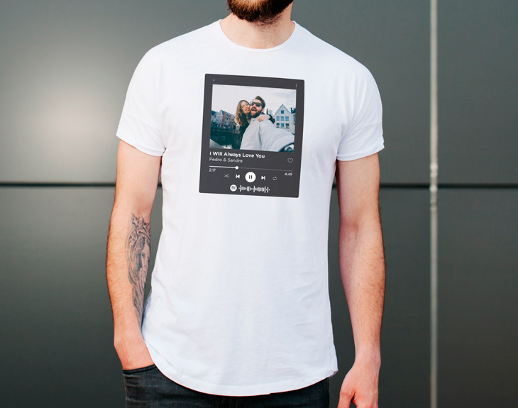 ¿Cuántas veces has pensado en dedicarle esa canción a la persona más especial de tu vida? ¿Tu amiga y tú tenéis una canción favorita que os llena de recuerdos? Seguro que tienes alguna persona con la que compartes una canción, ya sea por los momentos que habéis vivido o porque el grupo o cantante coincide que es vuestro favorito. Si es así, esta camiseta personalizada es perfecta para darle una sorpresa. Elige una foto especial, y escribe el texto que quieras. Nosotros personalizaremos el regalo con toda la información que nos dejes para que lo tengas listo para el día de la sorpresa. Aprovecha San Valentín, o un día aleatorio para dar una enorme sorpresa a esa persona importante. Importante: Este producto es una réplica del diseño de reproducción de Spotify, pero NO es un altavoz. ¿Cómo se personalizan los productos Spotify? A la hora de personalizar tus productos relacionados con Spotify, tendrás que contestar a una serie de preguntas. De esta manera… ¡tendrás un regalo original de lo más musical! Cuando llegues al diseñador te encontrarás con la plantilla del producto, con tres apartados a personalizar (texto, foto y código Spotify). Para personalizar cada uno sólo tendrás que hacer click encima de cada cuadrado de personalización. Una vez dado, solo tendrás que escribir el texto y subir la fotografía a nuestro servidor. ¡Podrás modificar el color del texto o su lugar en el diseño! En el momento de añadir esa canción tan característica, no tendrás ningún problema. Escribe la canción o el artista que quieras en el buscador del código Spotify, y a partir de ahí aparecerán una serie de resultados. Solo tendrás que pinchar sobre la canción... ¡no tendrás que hacer nada más! Dependiendo del producto, podrás modificar las características del código: color, fondo o lugar. ¿Cómo se escanea el código? Para poder descubrir de qué canción se trata tendrás que abrir la aplicación de Spotify en tu teléfono móvil y darle al apartado "Buscar". En la parte superior encontrarás un buscador, cuando pulses sobre él verás que en la esquina derecha aparece un icono de una cámara. Al pinchar te abrirá la cámara, únicamente tienes que apuntar al código y automáticamente se reproducirá tu canción. Material: - Algodón: 100% algodón. - Tacto algodón: 100% poliéster cotton touch. - Técnicas: 100% poliéster. Importante: Las medidas son aproximadas, pueden variar 5cm por encima o por debajo.