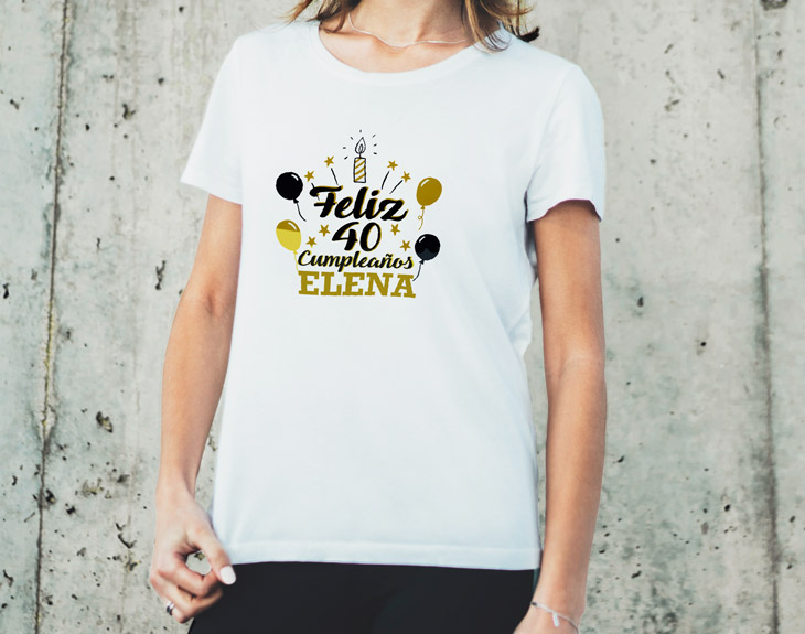 Si conoces a una persona que adora el día de su cumpleaños y siempre intenta organizar las fiestas de cumpleaños más elegantes del mundo, esta camiseta personalizada es perfecta para sorprenderla. Se trata de un regalo muy especial que puede ser, tanto para cumpleañero como para todos los invitados. Imagínate llegar a la fiesta de cumpleaños elegante y que todos los invitados lleven la camiseta con el nombre del protagonista. ¡Sería genial! Material: - Algodón: 100% algodón. - Tacto algodón: 100% poliéster cotton touch. - Técnicas: 100% poliéster. Importante: Las medidas son aproximadas, pueden variar 5cm por encima o por debajo.