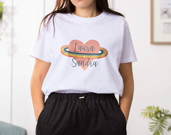 El amor no tiene límites, y lo queremos celebrar con esta camiseta personalizada. ¿Vives una historia de amor que parece un cuento? Este regalo es perfecto para sorprender a tu pareja. Solo necesitamos los nombres para diseñar la camiseta y hacerla única. El amor de cuento es fantástico y, ¿por qué no celebrarlo? Si eres un afortunado o una afortunada por vivir con una persona verdadera, esta camiseta os va a encantar. Aprovecha San Valentín, su cumpleaños o vuestro aniversario para darle una sorpresa súper tierna a tu pareja. Material: - Algodón: 100% algodón. - Tacto algodón: 100% poliéster cotton touch. - Técnicas: 100% poliéster. Importante: Las medidas son aproximadas, pueden variar 5cm por encima o por debajo.