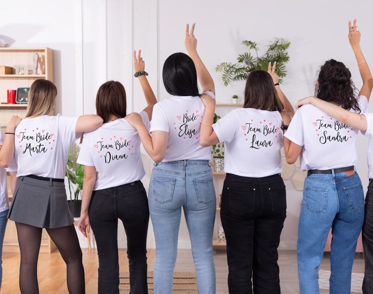 Si tu mejor amiga se casa dentro de muy poquito... ¡Es el momento de preparar su despedida de soltera! Y el primer paso para que este día sea inolvidable es que todas tengáis vuestra propia camiseta personalizada. Y es que podrás añadir en ellas tanto el diseño para la novia como para el resto de amigas. ¡Son lo más! Como amigas de la novia que sois, os toca encargaros de que tenga las camisetas más originales del mundo para esta fecha. Gracias a nuestro selector de cantidad, vais a poder elegir cuántas unidades queréis y personalizar cada una a vuestro gusto. ¡Quedarán increíbles! Para personalizar las camisetas, primero tienes que acceder al área de personalización. Dentro de nuestro diseñador, elige el diseño que vas a poner en cada camiseta y añade el nombre que quieras en cada uno de ellos para que todos sean únicos y diferentes. ¡Será la mejor despedida del mundo! Material: - Algodón: manga corta- 100% algodón; manga larga- 100% algodón. - Tacto algodón: 100% poliéster cotton touch. Ligeramente translúcida. - Técnica: 100% poliéster (Colores solo disponibles en algodón) Importante: Las medidas son aproximadas, pueden variar 5 cm por encima o por debajo.