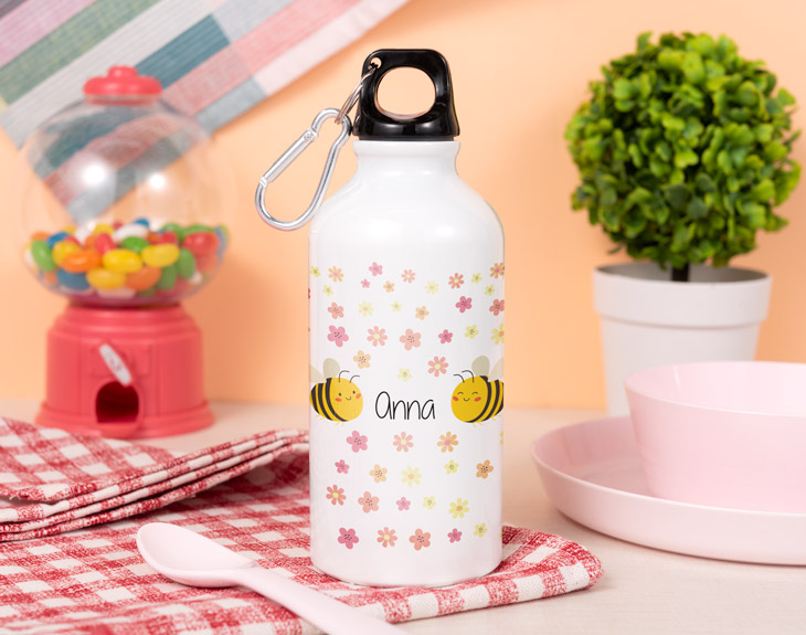 Las abejas son una parte vital de nuestra comunidad ya que ayudan a la producción de oxígeno, polinizan las flores y nos dan miel. A algunos les asusta su picadura pero si tu hijo es de los que las adora esta cantimplora personalizada es el regalo ideal. Aparte de monísima es útil y seguro que le encantará beber agua de ella y llevársela al cole. Para conseguirla solo necesitamos que nos digas el nombre que deseas que vaya impreso en la botella y nos pondremos manos a la obra. Es un regalo monísimo con el que acertarás seguro.