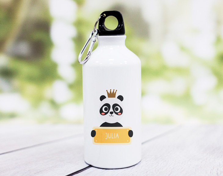 Los pandas son los animales más amorosos que pueden existir. Son achuchables, peludos, y de lo más monos gracias a esas manchas blancas y negras. ¿Cómo no puede ser nuestro animal favorito? Seguro que si le preguntas al más pequeño de la casa cuál es su animal preferido, uno de esos será el oso panda. ¡Haz que siempre le acompañe en su día a día gracias a esta cantimplora personalizada! Para que las excursiones escolares sean aún más memorables contamos con esta cantimplora de aluminio con diseño de panda, para que tu hijo pueda hidratarse siempre junto a su animal preferido. Este fabuloso diseño irá en una cantimplora hecha de aluminio, de 17 centímetros de alto y con una capacidad de 400 mililitros. ¡Su tapa con mosquetón incluido hará que sea todavía más fácil llevarla a todas partes! Y es que un regalo original para la vuelta al cole como este no solo le será de gran ayuda en las salidas escolares. ¡También podrá disfrutarla en clase! Lo único que queda para que este regalo sea aún más especial es el nombre de ese pequeño amante de los pandas. Una vez añadas el producto al carrito, lo único que tendrás que hacer es entrar en el área de personalización (donde encontraras el diseño de este monísimo panda) y escribir el nombre justo debajo. ¡Será un detallazo para la vuelta a la rutina!