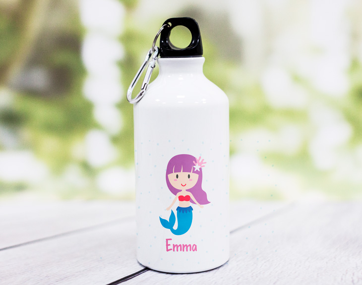 Sabemos perfectamente lo que es pasar un día entero en el colegio. Muchas clases y lecciones por dar, gimnasia, muchísimo tiempo en el patio del cole... ¿Cómo no van a terminar cansaditos al final del día? Hacerle frente al día a día puede ser de lo más duro para los más pequeños de la casa. ¡Para todos ellos tenemos esta cantimplora personalizada con un diseño de lo más acuático! Este curiosa cantimplora de aluminio con diseño de sirena está hecha para todos los amantes de esta curiosa criatura, tan bella como interesante. Esta cantimplora está hecha de aluminio, lo que permite aislar la temperatura del líquido. ¡Puede llegar a contener unos 400 mililitros de agua o de su bebida favorita! Además, cuenta con un tapón negro con mosquetón, para que pueda llevarla a todas partes. Para crear un regalo original de lo más único para la vuelta al cole, esta cantimplora cuenta con un diseño de sirena para todos los que quieren recordar el mar. ¿Qué tendrás que hacer para personalizar este producto? Solo tendrás que entrar en el área de personalización y escribir su nombre o apodo en el diseño. ¡Nosotros nos encargaremos de plasmarlo en la cantimplora!