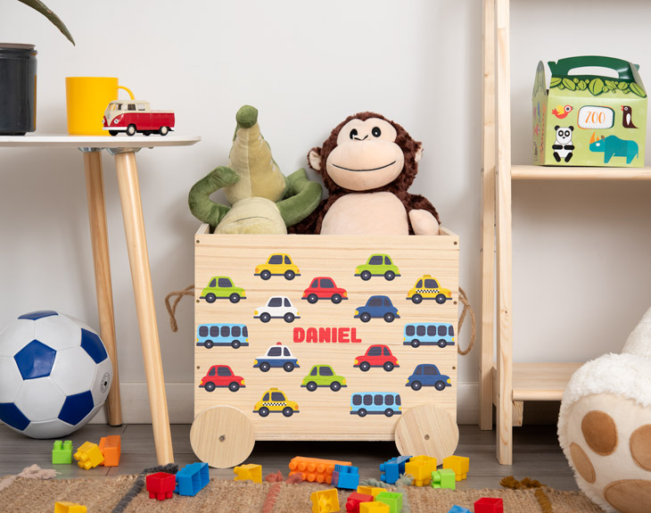 Los niños solo quieren divertirse, jugar con todos sus juguetes y no tener ninguna preocupación más que pensar con qué juegan cada día. ¡Eso sí que mola! Lo que no les gusta tantos a los niños es tener que recoger todas sus cosas cuando han terminado de jugar. Pero eso va a cambiar gracias a este carrito de madera personalizado. Es el accesorio perfecto para los más peques de la casa, porque será súper fácil para ellos guardar todos sus juguetes. Solo tienen que meterlos todos dentro y listo para la aventura del día siguiente. Si quieres que tus hijos recojan sus juguetes tan rápido como un coche en un circuito, necesitan este original carrito para juguetes con un diseño lleno de coches. Enseñarles la importancia de recoger y mantener un orden siempre, es algo primordial en su educación y con este carrito será súper fácil. Hecho de madera, es ideal para cualquier habitación porque queda genial con la decoración que sea. Si al más peque de la casa le encantan los coches, podrás personalizar este carrito con un diseño lleno de coches de colores. Añade el producto a la cesta y escribe el nombre que quieras en el espacio vacío. Podrás ajustarlo como quieras y ver en todo momento cómo va a quedar. ¡El mejor carrito para juguetes está listo! Medidas: Altura: 32 cm. Ancho: 40 cm. Diámetro de la rueda: 10 cm.