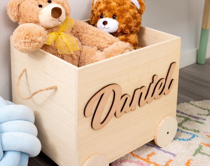Los juguetes de tus hijos se pueden perder muy fácilmente por los rincones de vuestra casa. ¿Por qué no tener un producto donde guardarlos todos cada vez que terminen de jugar? Este carrito de madera personalizado es el mejor detalle que puedes tener con tus pequeños... ¡Y contigo mismo! Gracias a este carrito para juguetes con nombre en madera, tus hijos podrán guardar todos sus juguetes. ¡No los volverás a ver tirados por el suelo! Este producto cuenta con cuatro ruedas en su base y, al tener unas medidas de 32 centímetros de alto por 40 de ancho, podrán caber todos los juguetes de su cuarto. ¡Desde las muñecas hasta los balones de fútbol! Será el mejor regalo original para niños, ya que podrán jugar en cualquier rincón de la casa. A la hora de personalizar este carrito solo tendrás que añadir el producto al carro de compra y entrar en el área de personalización, donde solo tendrás que escribir su nombre en el cajón de respuesta. ¡Nosotros lo grabaremos en madera! Medidas: Altura: 32 cm. Ancho: 40 cm. Diámetro de la rueda: 10 cm. Material de la caja: madera. Material del nombre: madera.