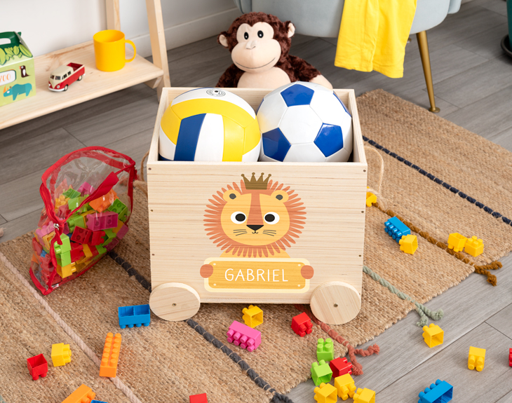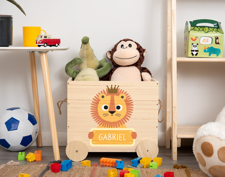 Está claro que los peques son los auténticos reyes de la casa. Lo que mejor saben hacer y lo que más disfrutan en su día a día cuando son chiquititos es poder jugar a todas horas. Vivir en sus propios mundos, crear una aventura nueva cada día e imaginarse que están en cualquier lugar menos en su habitación. Pero cuando toca recoger, es imposible que nunca quede alguna cosa por el suelo tirada, por eso este carrito de madera personalizado es el aliado perfecto para todas las familias. Es ideal para que los niños y niñas puedan guardar en él todos sus juguetes y que estén listo para el día siguiente. ¡Le encantará tener su propio rinconcito para guardar todas sus cositas! Si quieres enseñar a tus hijos la importancia de recoger todos sus juguetes y mantener la organización en su espacio de juego, será muy fácil con este original carrito para juguetes. Hecho de madera y con un diseño que les encantará, es perfecto porque queda genial en cualquier habitación, tenga la decoración que tenga. Si tu hijo o hija es el rey de la casa como los leones son los reyes de la selva, personaliza el carrito con este precioso diseño de un león con corona. Añade el producto a la cesta y escribe el nombre que quieras en el espacio vacío. Podrás ajustarlo como quieras y ver en todo momento cómo va a quedar. ¡Así de fácil es tener el mejor carrito para juguetes del mundo! Medidas: Altura: 32 cm. Ancho: 40 cm. Diámetro de la rueda: 10 cm.