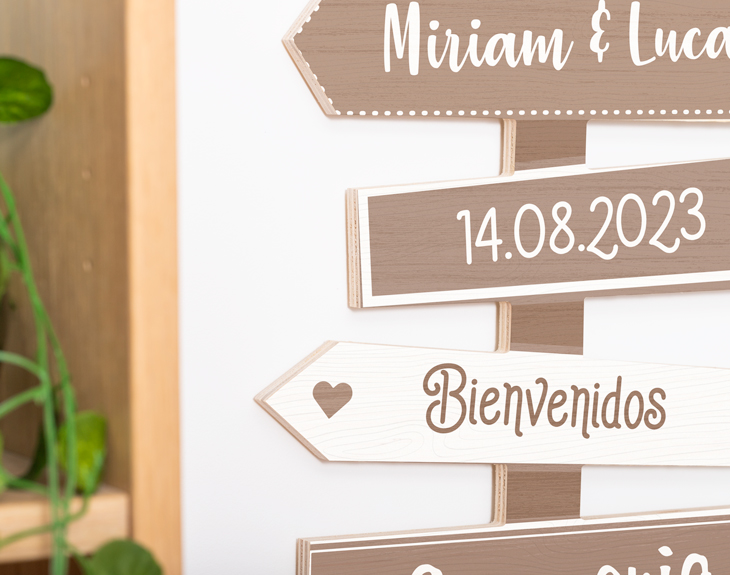 • Cartel de madera personalizada. • Tarjeta recordatoria.