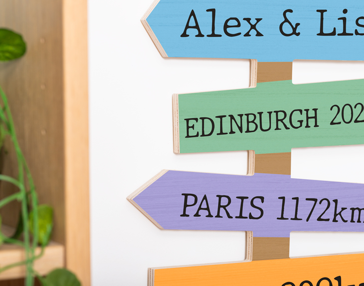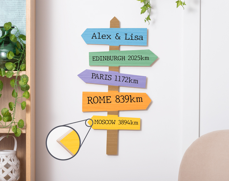 ¿Viajar es tu pasión? ¿Conocer lugares secretos con tu pareja es el plan que más te apetece hacer siempre? ¿Congeniáis muy bien allá donde estéis? Este cartel de madera personalizado es perfecto para los auténticos viajeros. Muchos utilizan mapas de rascar, corchos o demás murales para guardar los recuerdos de sus viajes. Pero a muchos otros les gusta más lo vintage, lo original y divertido. En este cartel lleno de flechas podrás escribir los textos que tú quieras. Nosotros hemos diseñado un ejemplo para que los enamorados de los viajes puedan tener la opción de apuntar todos aquellos destinos más destacables que han vivido. Pero, puedes enfocar el regalo en otro sentido que no sea destinos y viajes. ¡La imaginación al poder! Responde a todas las preguntas que necesitamos para personalizar este cartel, y tendrás un regalo estupendo para tu pareja o mejor amiga. ¡Que vivan las sorpresas originales! Material: madera. Medidas: 33 cm x 58 cm. Importante: Las maderas tienen vetas y éstas pueden quedar reflejadas en la impresión.