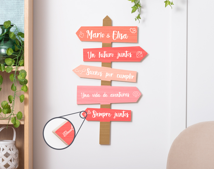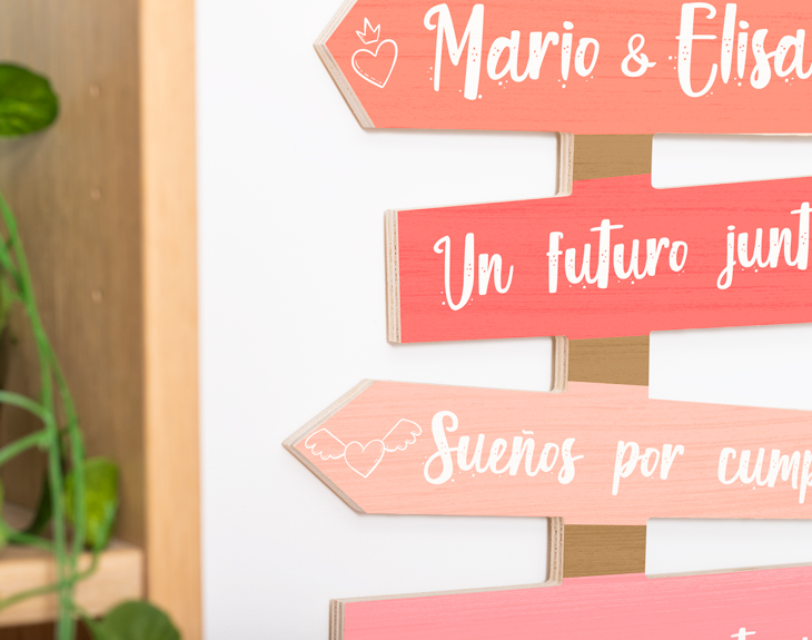 • Cartel de flechas de madera. • Tarjeta recordatoria.