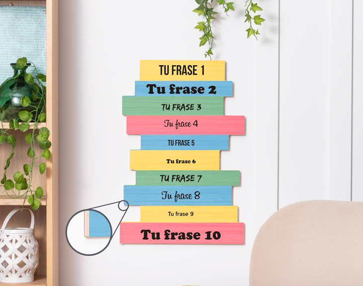 • Cartel de madera personalizado. • Tarjeta recordatoria.