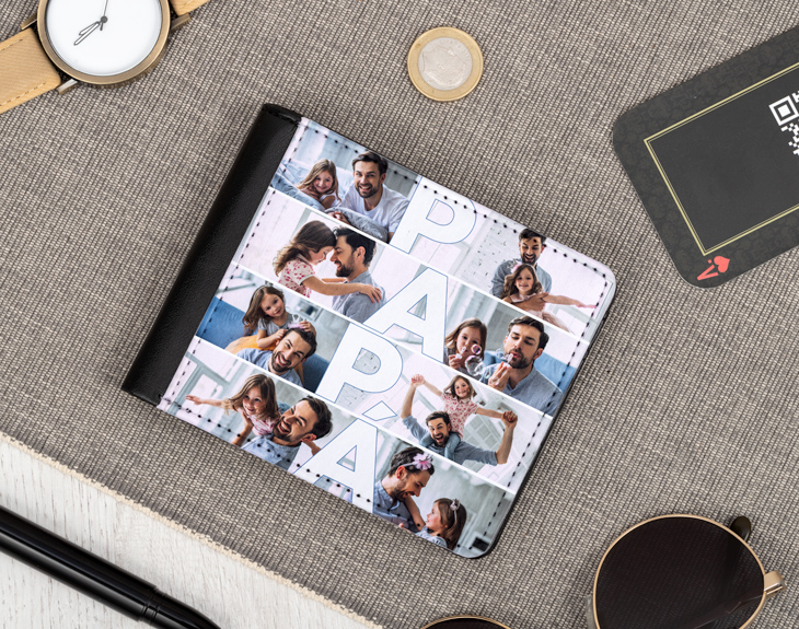 Está claro que nadie sale de casa sin su cartera. Y es que, es uno de los accesorios más importantes, ya que guarda las cosas más valiosas como el carnet de identidad, el abono de transporte, la tarjeta, el dinero… Por eso, esta cartera bicolor para padres es algo que no le puede faltar al tuyo. ¡Lo acompañará a todas partes! Si se acerca el cumple de papá, el Día del Padre o cualquier ocasión especial, no dudes en sorprenderle con esta cartera tan guay, sin duda, será el regalo perfecto. De color blanco y negro, es perfecta para utilizarla todos los días. Pero, además, contiene siete compartimentos para tarjetas y una más convencional para los billetes. Y lo mejor, es que se puede personalizar con fotos, podrás elegir tus favoritas. ¡Así las llevará siempre consigo! Parar personalizar esta cartera de hombre, el primer paso a seguir es añadir el producto al carrito y entrar al área de personalización. Una vez ahí, adjuntas las fotos que más te gusten y nosotros nos encargamos de lo demás. ¡Pronto estará lista para regalar! Material: polipiel. Medidas aproximadas: 11,5 x 9,5 cm (cerrada) 23 x 9,5 cm (abierta)