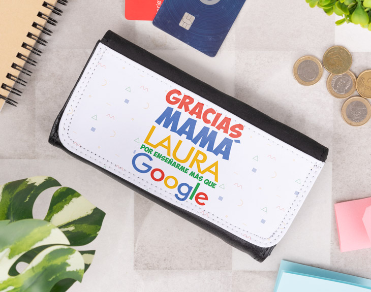 Google es una enciclopedia gigante donde la gente busca todo lo que se le ocurra. ¿La cabeza de tu madre es así de sorprendente? Esta cartera de mujer personalizada es perfecta para tu madre entonces. Dinos su nombre y personalizaremos este diseño tan chulo y del Siglo XXI para que tu mamá se sienta única, como se merece. Un regalo increíble y muy original que dará la vuelta al mundo.
