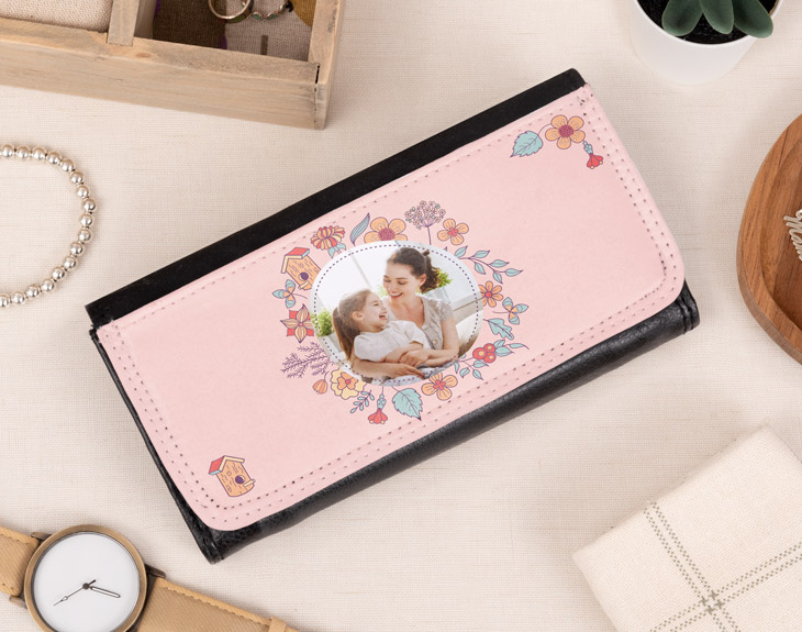 • Cartera de mujer con foto y/o texto (18,5 cm x 9,5 cm x 2,5 cm). • Tarjeta Recordatoria.