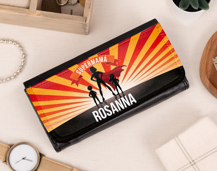 Nuestra cartera de mujer personalizada es perfecta para la supermamá que siempre viste con capa. Si tu madre es una mujer súper valiente que se preocupa un montón por sus hijos y les da todo lo que necesitan, este es el regalazo que está esperando. Te preguntaremos el nombre de tu madre para personalizar el pedido y hacerlo único.
