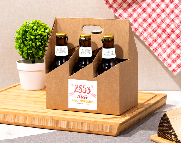 ¿Cuántos días llevas enamorado de tu novia? ¿No lo sabes? Calcúlalo y personaliza las etiquetas de estas cervezas para sorprender a tu chica cuando menos se lo espere. Es un regalo tan romántico que es importante que te lo trabajes bien. Gozaréis de ese placer de amar hasta el fin de vuestros días gracias a este pack de 6 botellines de San Miguel Especial, una bebida refrescante y auténtica. Personaliza las etiquetas con vuestros nombres y los días que llevas enamorado y disfruta de su cara de sorpresa.