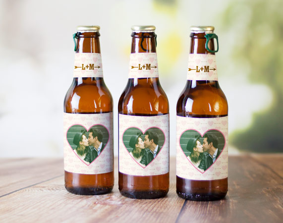 Nuestras seis cervezas personalizadas son perfectas para que cupido llegue y cree el amor entre vosotros. Es un regalo muy romántico que seguro que le sorprenderá a tu pareja. Personaliza las etiquetas de abajo con una foto, y las de arriba con vuestras iniciales, y no tendrás más que hacer un brindis del amor muy especial. Utilizamos como base una cerveza San Miguel Especial, una bebida refrescante y muy auténtica. Prepáralo todo y sorprende a tu novia o novio con este brindis lleno de romanticismo y ternura.