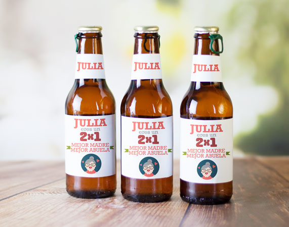 ¿Tienes la abuela más juvenil del mundo? ¡Entonces este pack de seis cervezas tiene su nombre! Y nunca mejor dicho, porque lo personalizamos para que sea aún más especial. La forma perfecta de agradecerle todo lo que hace por vosotros. Porque ser la mejor madre y la mejor abuela que existe no es tarea fácil. ¡Mímala mucho! Utilizamos como base seis cervezas San Miguel Especial, una bebida refrescante y muy auténtica para que puedas disfrutar con tu abuela de una buena conversación y cervecita fresquita. Personalizamos la etiqueta con su nombre. Podrás elegir si quieres personalizar las seis cervezas con el mismo diseño para todos o con un diseño diferente para cada una de ellas.