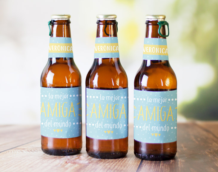 El mejor regalo para esa amiga que siempre está dispuesta a dejar todo lo que esté haciendo por salir contigo a tomar unas cañas. Si te apoya y acompaña en todas tus locuras, te conoce incluso mejor que tú misma y haría lo que fuese por ti, agradéceselo con este regalo tan original. Se trata de un pack de seis cervezas personalizadas con una frase muy especial y su nombre. ¿Te imaginas la ilusión que le hará? Y es que, más que tu mejor amiga es prácticamente tu hermana...¡Demuéstrale lo muchísimo que la quieres! Además, así podréis brindar con unas buenas cervecitas por esa amistad tan verdadera que habéis creado...¡Nada ni nadie podrá separaros! Utilizamos como base seis cervezas San Miguel Especial, una bebida refrescante y muy auténtica para que pueda disfrutar de una buena conversación y cervecita fresquita. Podréis personalizar la etiqueta con su nombre, seguro que le hace mucha ilusión.