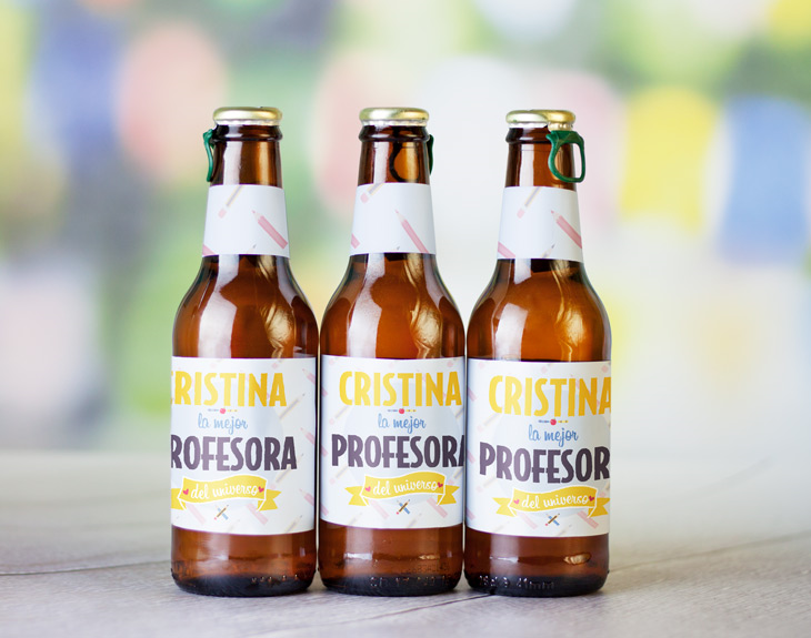 Aprovechad el final de curso para darle una gran sorpresa a vuestra profe para agradecerle todo lo que os ha enseñado. Con este pack de cervezas personalizadas daréis en el clavo. Esta es una bonita y original forma de darle las gracias a vuestra profe por todo su trabajo y por su infinita paciencia. En este pack de cervezas utilizamos como base seis cervezas San Miguel Especial, una bebida refrescante y muy auténtica para que pueda disfrutar de una buena conversación y cervecita fresquita. Además, podréis personalizar la etiqueta con su nombre. ¿No os parece una idea genial?