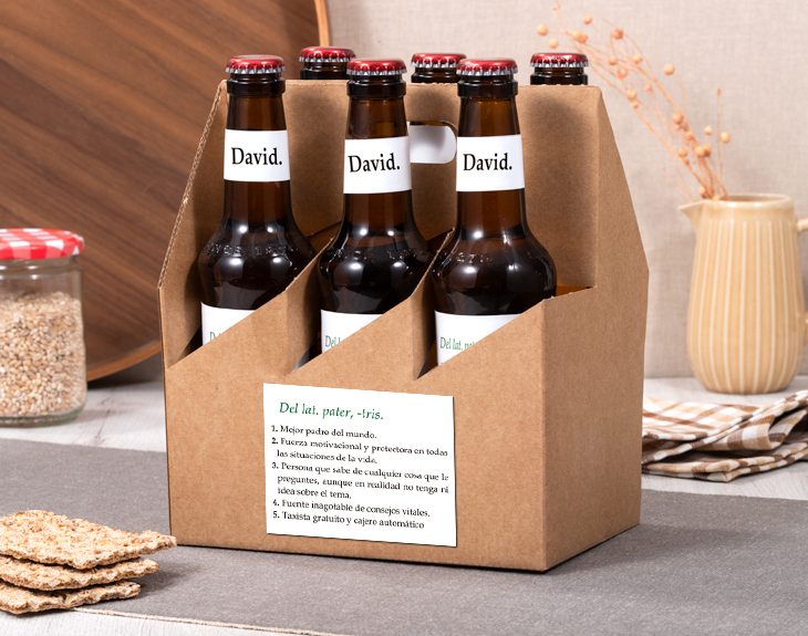 ¿Nunca sabes cómo describir a tu padre? ¿Nunca te atreves a decirle todo lo que piensas de él? Nosotros te lo hemos dejado todo hecho para que solo tengas que disfrutar de un buen momento de papá e hijo. Estas cervezas tienen las etiquetas personalizadas con el nombre de tu padre y lo que significa ser un papá. Si estás de acuerdo con los cinco puntos, no tienes más que decirnos su nombre. ¡Nosotros haremos todo por ti! Utilizamos como base seis cervezas de San Miguel Especial, una bebida refrescante y muy auténtica, la perfecta para charlar un rato agradable con papá.