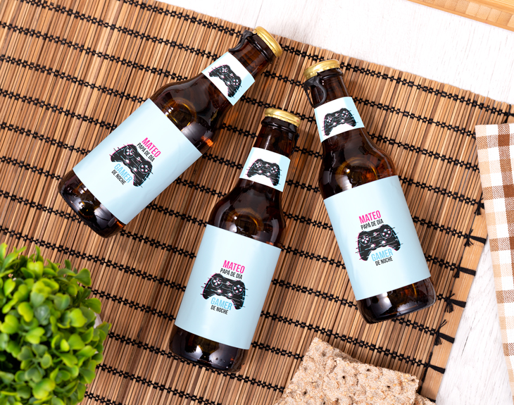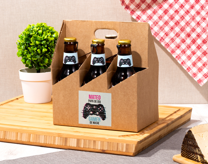 ¿Tu padre es el mejor del mundo de día, y por las noches se convierte en el gamer más espectacular? Pídele un descanso y tómate estas cervezas personalizadas con él. ¿Hace cuánto que no hablas con tu padre? ¡Es el momento! Ahora tienes la oportunidad de disfrutar de unas San Miguel Especial con el mejor papá del mundo y pasar un buen rato en familia. Este pack incluye 6 botellines de cerveza con las etiquetas personalizadas con este diseño chulísimo y el nombre de tu padre arriba. ¡Aprovecha la oportunidad y pasa un momento agradable con tu familia! Podrás elegir si quieres personalizar las seis cervezas con el mismo diseño para todos o con un diseño diferente para cada una de ellas.