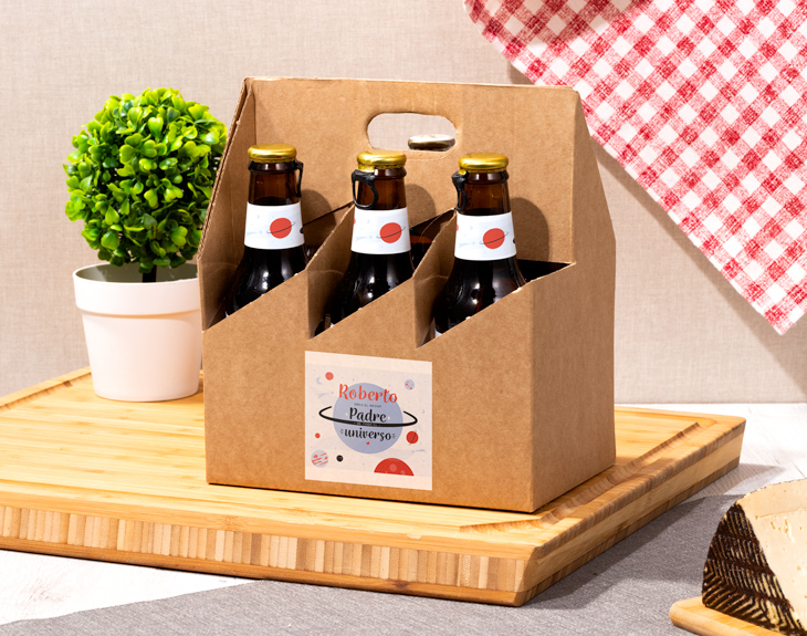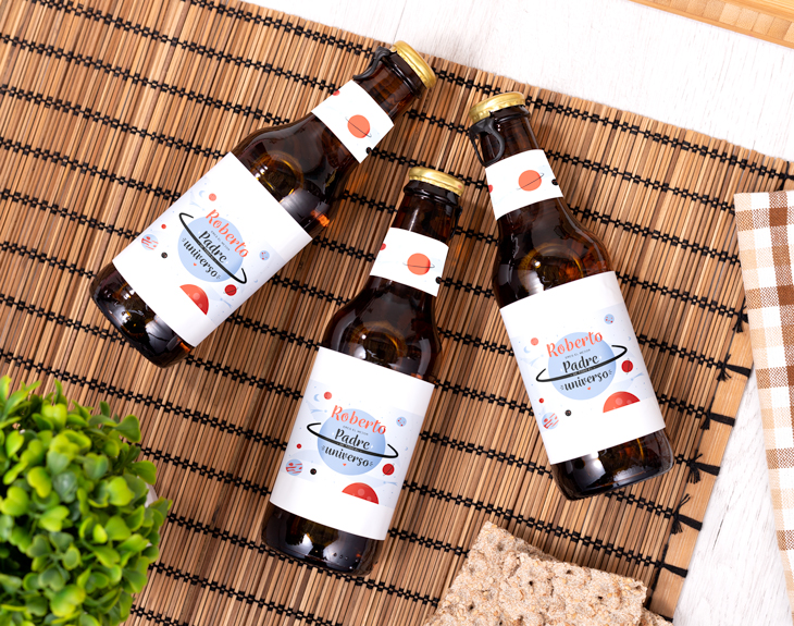 El mejor regalo que le puedes hacer a tu padres pasar tiempo con él. ¡Y brindar juntos por vuestra relación! Ahí puedes aprovechar para decirle lo que siempre has pensado pero casi nunca expresas: que es el mejor padre del universo. Y no te harán falta palabras: puedes decírselo con este pack de seis cervezas personalizadas. Utiliza este diseño de planetas y corazones para dejarle sin palabras. Además de ser un regalo original para padres, esta puede ser la excusa perfecta para que paséis tiempo en familia en honor al papá. Tendréis hasta seis botellines de 250 mililitros rellenos de cerveza San Miguel. ¡Habrá una para cada uno! Todas ellas tendrán la etiqueta personalizada con el mismo nombre que elijas sobre el diseño. Os gustarán tanto y serán tan especiales que luego querréis conservarlas de recuerdo. ¡No te quedes sin tus cervezas para el Día del Padre! Importante: Utilizamos como base botellines de cerveza San Miguel, una bebida de lo más refrescante.