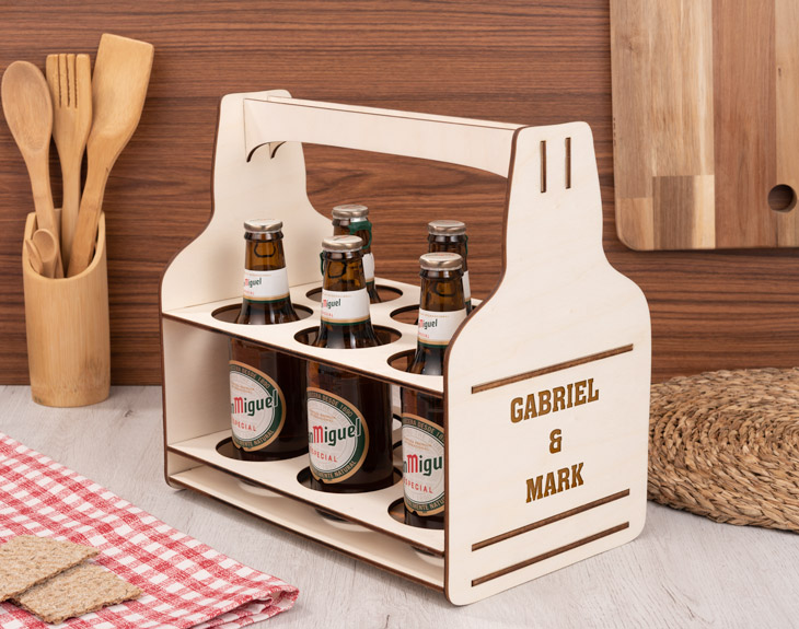 Nuestra cesta de madera es perfecta para hacer uno de los mejores regalos de todos los tiempos: 6 botellines de cerveza. Ahora tienes la oportunidad de hacer un regalo con mucha clase. Esta cesta de madera impresionará a la persona en la que estás pensando, ya que puedes personalizarla con su nombre o el texto que quieras y así completar un regalo de lo más brillante. Tienes la posibilidad también de adquirir la cesta con 6 botellines de cerveza. ¡Crea tu propio pack! Medidas: 15x19,5x22cm. Material: madera.