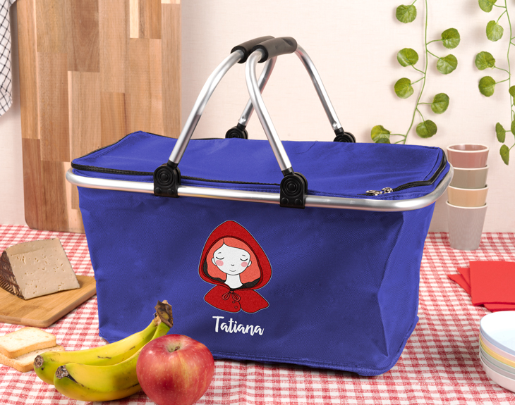 ¿Quién no ha escuchado alguna vez la historia de Caperucita roja? Todos hemos oído este cuento en el que una dulce niña se encuentra con un lobo de camino a casa de su abuelita. Uno de los aspectos más representativos siempre será esa cesta que cuenta con una comida deliciosa. Gracias a esta nevera plegable personalizada, los fans de este mítico cuento podrán sentirse como su protagonista. ¡Ten cuidado con el lobo! Esta cesta para la compra con diseño del cuento 'Caperucita roja' te puede venir de lujo en cualquier ocasión... ¡Y no solo para dar paseos por el bosque yendo a ver a tu abuela! La cesta está hecha de tela y es plegable, por lo que se puede guardar en cualquier rincón cuando no la utilices. ¡Genial para ir al supermercado! Su interior cuenta con aislamiento térmico, perfecto para mantener la temperatura el tiempo que sea necesario. Si estás planeando una escapada, un picnic en mitad del campo o un día de playa con los amigos, saca tu lado más caperucita con este regalo original. Podrás personalizar este producto con el nombre que quieras junto a un dibujo de la mítica caperucita roja. Al entrar en el área de personalización encontrarás el diseño, al que solo tendrás que escribir el nombre que quieras en el cuadro de texto que encontrarás en la plantilla. Medidas: 47,5 x 27,5 x 21 cm. Material: tela.