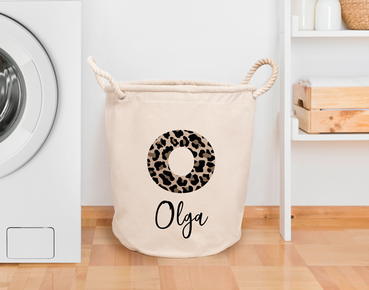 Si estás cansado de tener el típico cesto normal para guardar la ropa sucia y necesitas un cambio. Aquí tenemos nuestro cesto personalizado con un estampado en Animal Print. Sin duda, ¡será el cesto más fashion que hayas visto! Además, la posibilidad de personalizarlo con tu inicial y tu nombre, lo convertirá en algo único y diferente. Sabemos que tener que poner lavadoras puede ser algo muy aburrido, por eso, este cesto puede ser un regalo muy original y útil, hará que la rutina sea un poco más amena. Las medidas que tiene son de 40x40x60 centímetros, espacio suficiente para guardar todas las prendas que necesites lavar. ¿Cómo se personaliza este cesto? Es muy sencillo, solo tendrás que añadir el producto al carrito y entrar al área de personalización. Ahí, tienes un montón de estampados en animal print para que elijas el que más te guste, escoges la inicial y el nombre que quieres que aparezca y nosotros nos encargamos del resto. Información técnica: • Medidas: 40x40x60cm • Asas estilo cuerda (longitud: 50 cm) • Material: Lona de algondón 100%