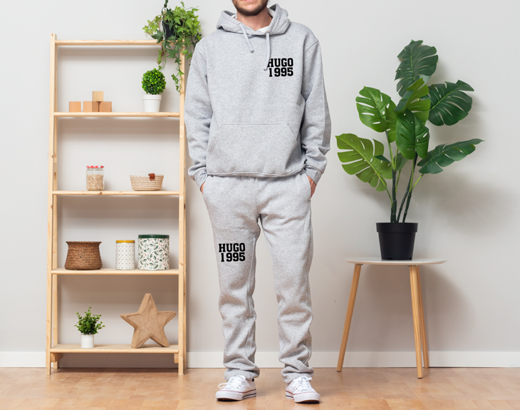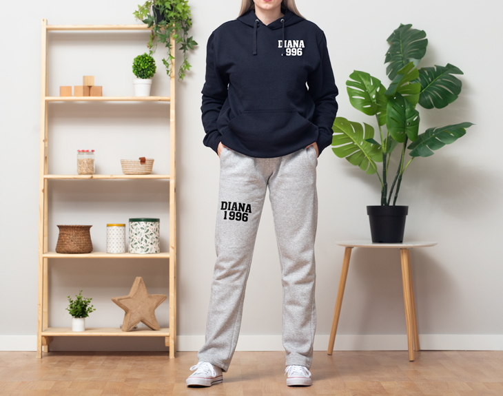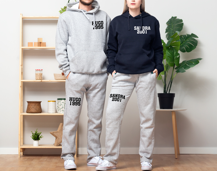 • Sudadera personalizada. • Pantalón de chándal personalizado. • Tarjeta recordatoria.