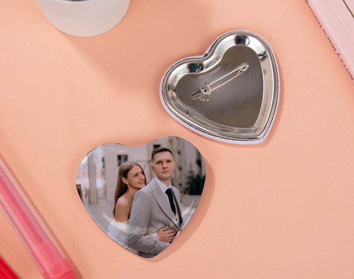 • Chapa Corazón personalizada. • Tarjeta recordatoria.