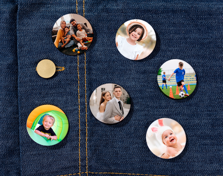 Las chapas personalizadas nunca pasan de moda. Crea las tuyas y utilízalas en toda clase de eventos: bodas, cumpleaños, convenciones frikis...