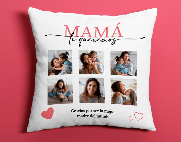 Una madre como la tuya lo habrá dado todo a lo largo de su vida por ti. Habrá habido momentos duros, pero también habréis vivido muchísimos instantes felices juntos, momentos que os han llegado al corazón y que os hacen sonreír cada vez que los recordáis. Tardes con toda la familia jugando a juegos de mesa, viendo una serie en el salón o escapando de la gran ciudad y yendo de vacaciones. ¡Todos esos momentos son especiales! ¿Te imaginas poder volver a ellos en cualquier momento? A todos nos encanta evadirnos del mundo y ver esos recuerdos en nuestra cabeza. ¿Por qué verlos en nuestra mente cuando podemos tenerlos en un cojín personalizado como este? Mamá no podrá no emocionarse con un detalle tan bonito como este. Este cojín collage para mamá tiene unas medidas de 40 x 40 centímetros, y viene tanto con la funda como con el relleno. Para personalizar este regalo original para madres y abuelas, solo tendrás que añadir las fotos que quieras a nuestro diseñador y escribir una dedicatoria preciosa para la mejor mamá. Sube las fotos al sistema y añádelas a la plantilla. Y si quieres tener el pack completo, también podrás añadir la taza personalizada con el mismo diseño. ¡Un regalo hecho exclusivamente para la mejor madre del mundo! Importante: si eliges la opción que incluye taza, esta será de cerámica.