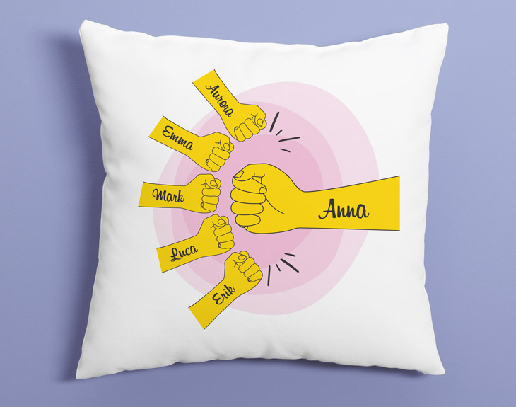 ¿Vuestra madre es la mejor capitana del mundo? Si desde que eráis muy pequeñitos os ha hecho ser un equipo y os inculcado la importancia de apoyaros y manteneros siempre unidos, este cojín personalizado está hecho para ella. Será el regalo más emotivo que haya recibido nunca y le hará muchísima ilusión que sea de su familia. Además, su diseño le llegará al corazoncito porque simboliza la familia y la unión. Si estáis buscando un regalo diferente para sorprender a mamá el día de su cumpleaños, en el Día de la Madre o en cualquier otra fecha especial, sin duda, está opción es genial. Triunfarás con este original y divertido cojín para que cada día al irse a dormir recuerde el pedazo de equipo que ha formado: ¡su familia! Le encantará este regalo tan emotivo hecho especialmente para ella. Para personalizar este cojín solamente tienes que añadir el producto al carrito, escoger el número de puñitos que queráis añadir, así como el tono de piel que más se parezca a la vuestra y escribir los nombres en cada espacio vacío. ¡Nosotros nos encargamos del resto! Además, si queréis hacer un regalo mucho más especial, podéis elegir el pack que incluye cojín y taza personalizados con el mismo diseño. Así no solo se acostará pensando en vosotros, también lo hará en la hora del desayuno. ¡No habrá mejor manera de acabar y empezar los días para mamá!