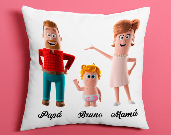 El cojín familia 3D te permite crear unos diseños fantásticos con personajes que simulen ser tu familia. ¿Te atreves? Tienes disponibles hasta 56 personajes, de los cuales podrás escoger 8 para diseñar tu cojín. Importante: nuestro equipo de personalización se encargará de ajustar la distribución de los personajes en el producto en función de su tamaño para que se vean lo mejor posible.