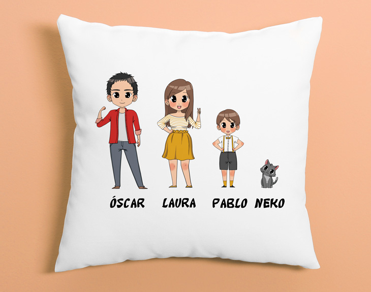 El cojín revelación para los aficionados al manga y el anime. Si la Princesa Mononoke marcó un antes y un después en tu vida, y la película Your name te ha vuelto a despertar ese amor y magia que tienes en el interior, este cojín personalizado está hecho para ti. Seguro que tienes amigos otaku que no dejan de ver anime. ¿Se han visto todas las series de Netflix? Este regalo también está hecho para ellos. Pero no solo eso, sino que si tu pareja y tú estáis enganchadísimos a Kaichou wa maid sama u otro anime de romance, este cojín también está hecho para vosotros. Podrás elegir hasta 8 personajes anime y ponerles el nombre que tú quieras. Te encontrarás con hombres, mujeres y niños vestidos como Naruto o los mejores personajes de Dragon Ball. ¡Anímate y no desaproveches esta oportunidad para sorprender a esa persona especial! Importante: nuestro equipo de personalización se encargará de ajustar la distribución de los personajes en el producto en función de su tamaño para que se vean lo mejor posible.