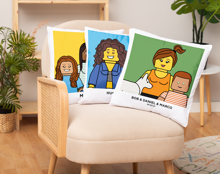 ¿Se acerca el Día de la Madre? Si todavía no tienes un detalle con el que sorprenderla, nosotros tenemos el mejor regalo que puedes hacer. Se trata de nuestro cojín personalizado con diseño "Madre Lego". Es genial para demostrarle lo mucho que la quieres y lo mucho que aprecias todo lo que hace por ti. ¡Le encantará! Y es que si tu madre y tú habéis pasado tardes enteras jugando con las piezas de Lego... ¡Este cojín está diseñado para vosotros! Podrás representaros en forma de Lego, quedará súper divertido. Hay un montón de rasgos y accesorios disponibles para elegir. Sin duda, este cojín le dará un toque mucho más personal y acogedor al salón de tu casa. Personalizar este cojín es súper sencillo. El primer paso a seguir consiste en añadir el producto al carrito y entrar al área de personalización. Una vez ahí, ya puedes crear a estos avatares Lego desde cero, ¡ya verás que divertido! Pronto estará perfecta y lista para regalar. ¡Será un original regalo para madres!