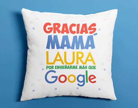 Si tu madre es como una enciclopedia con patas que lo sabe todo, todo y más, este es el mejor regalo que le puedes hacer. ¿Cuántas preguntas ha dejado sin contestar? ¿Muy pocas? Este cojín personalizado es lo que buscas para el Día de la Madre, su cumpleaños o cualquier momento en el que le quieras dar las gracias por la mejor del mundo. No hay nada que sepa más que Google, salvo una supermamá. ¿La tienes en casa? Danos su nombre y hazle este precioso detalle.