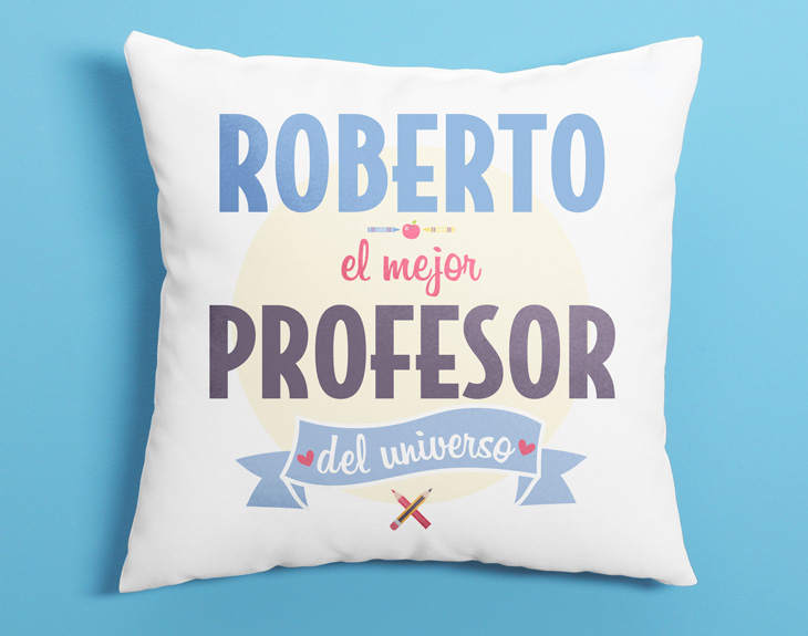 Los profesores son un pilar fundamental en nuestras vidas, no solo nos enseñan materias importantes pero también valores que nos acompañarán para siempre. Si queréis darle las gracias a vuestro o vuestra profesora por todo lo que os ha enseñado, este cojín personalizado es el regalo perfecto. Este cojín es una bonita forma de decirle lo mucho que valoráis todo su esfuerzo y su paciencia infinita. Seguro que le hace mucha ilusión que sus alumnos le hagan un detalle tan especial como este. Simplemente nos tenéis que decir el nombre de vuestro profe y nosotros nos encargaremos de insertarlo en este diseño tan divertido. Le encantará y lo guardará con muchísimo cariño.