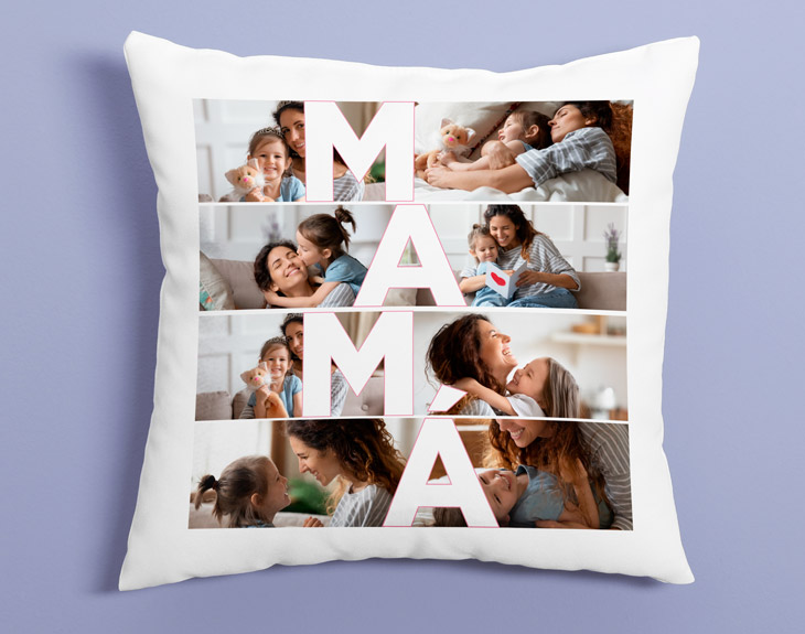 Si buscas un regalo con el que dejar huella en la memoria de tu madre, no puedes dejar pasar la oportunidad de hacerte con nuestro cojín personalizado Momentos con mamá. Un precioso detalle que se personaliza con sus fotografías favoritas y que llegará directo a su corazón. Este cojín está fabricado en suave tela de poliéster blanca y se envía con relleno incluido, listo para usar. Pero lo más importante es la personalización, que en este caso consiste en incluir 8 fotografías rodeando a la palabra “MAMÁ”. Diséñalo con las fotos de sus hijos pequeños, con sus mejores fotos en familia o con los dibujos de sus pequeños y crearás un regalo tan especial que se convertirá en su favorito. Además, y para hacer el regalo aún más completo, tienes la opción de enviarlo junto a una preciosa taza de cerámica a juego. Madre no hay más que una, y si la tuya es la mejor del mundo, se merece un regalo a la altura de su amor. Con nuestro cojín personalizado le dirás de la forma más tierna del mundo lo mucho que la quieres y lo importante que es en vuestras vidas. Si se acerca el día de la Madre o su cumpleaños, este regalo es una de las mejores opciones para emocionarla.